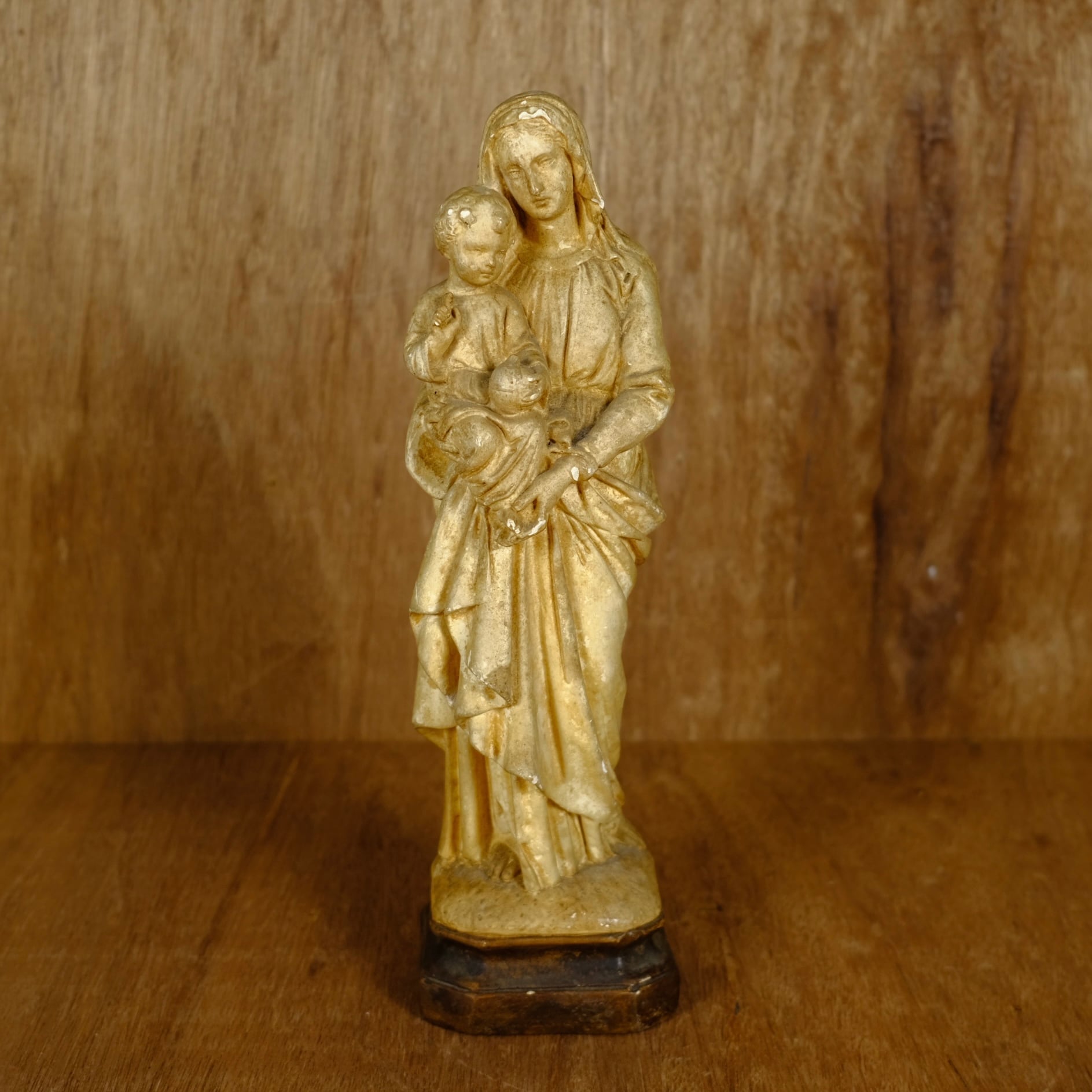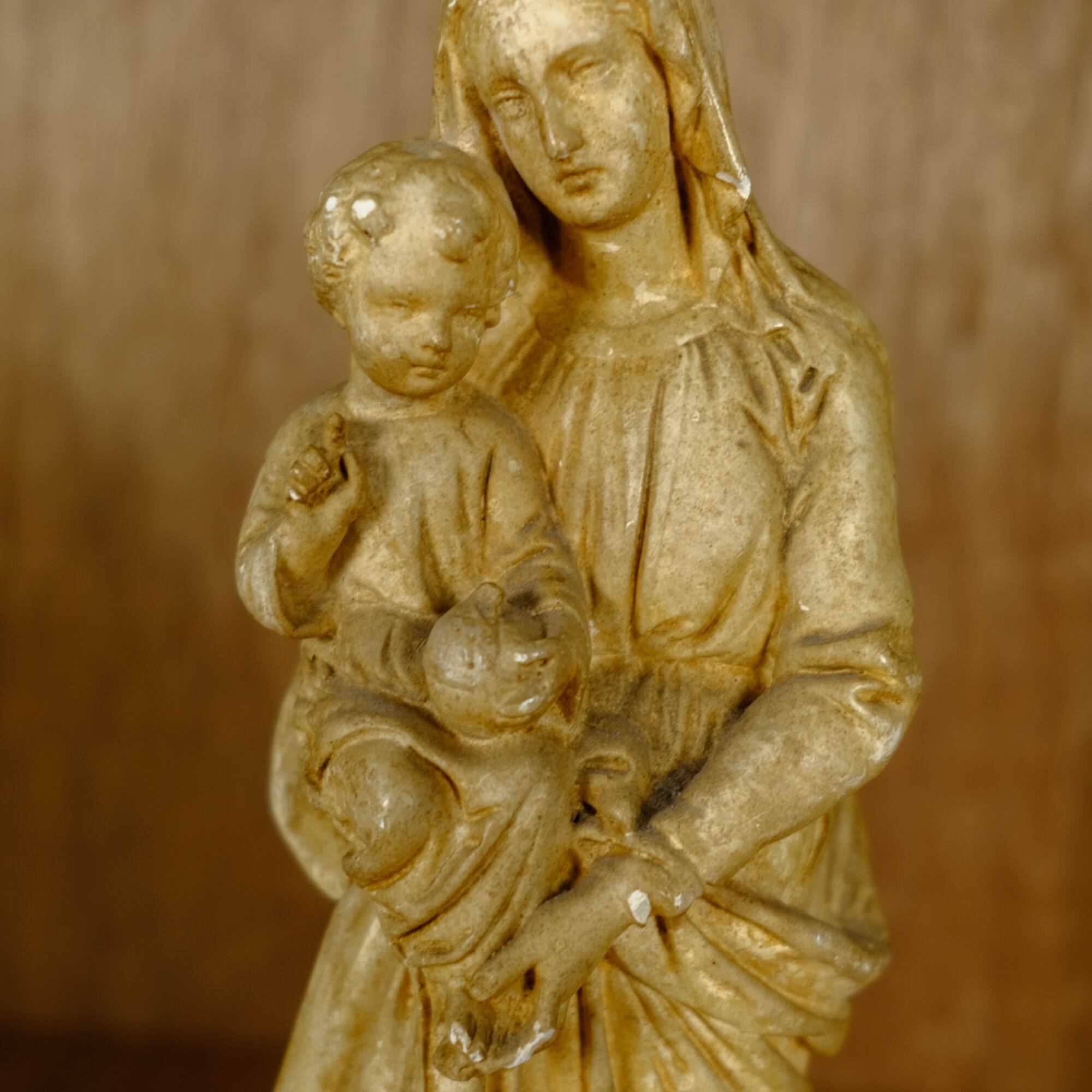 19世紀 フランス アンティーク 聖像 親子 マリア 彫刻 石膏 キリスト宗教
